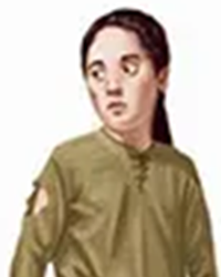 A large muscular woman who can be obstinate and hard to reason with once she gets an idea in her head